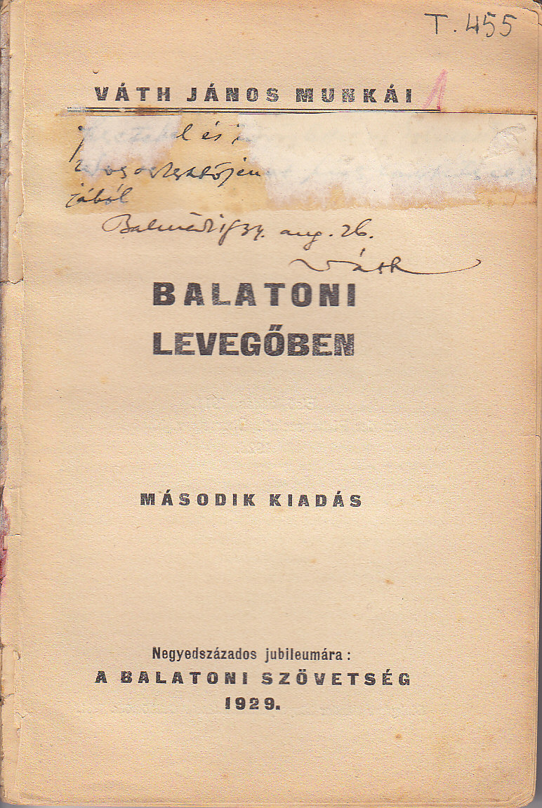 A Balatoni levegőben c. könyv címlapja