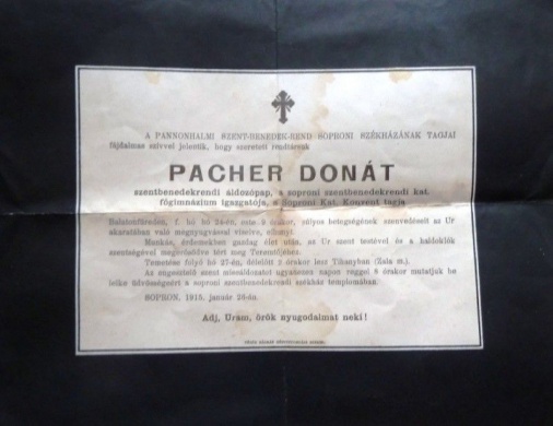• A Szent Benedek-rendi katolikus főgimázium értesítője Sopron, 1915:V nekrológ